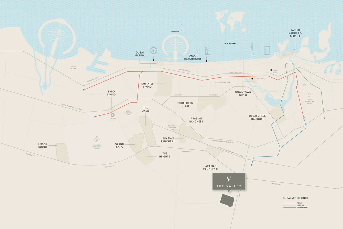 Avelia at The Valley is a residential villa cluster developed by Emaar Properties , Offering a Peaceful lifestyle surrounded by Greenary, Landscape gardens. The Developed features 4 & 5 Bedrooms Villas.