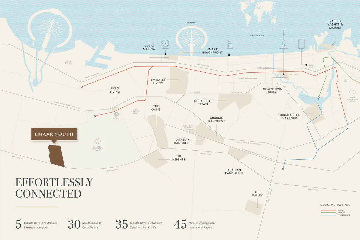 Imagine living in an abode of tranquility and connectivity, close to famous destinations like Dubai Marina, Downtown Dubai, Dubai Mall, Emaar Beachfront, Burj Al Arab, and more. A proximity that is awesome in terms of its connectivity to major road networks and access to essentials. A vicinity where you get almost everything within your reach, be it retail sections, dining outlets, supermarkets, institutions for education and health. Everything is just a stone throw away.