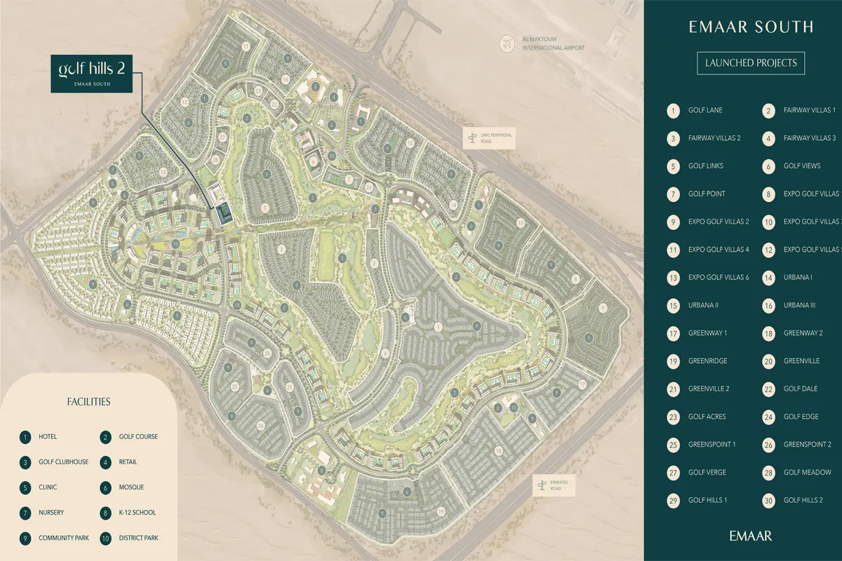 Introducing Golf Hills 2, the next chapter in the most sought after development from Emaar, at Emaar South offering 1, 2, & 3 bedroom apartments and 3- bedroom townhouses. Step into an unending fountain of peace and serenity, where life captures the essence of nature fused with urban modern living, offering you the beauty of nature and sophistication of luxury. Artistic endeavours that match none, a statement in itself through aesthetically pleasing designs.
