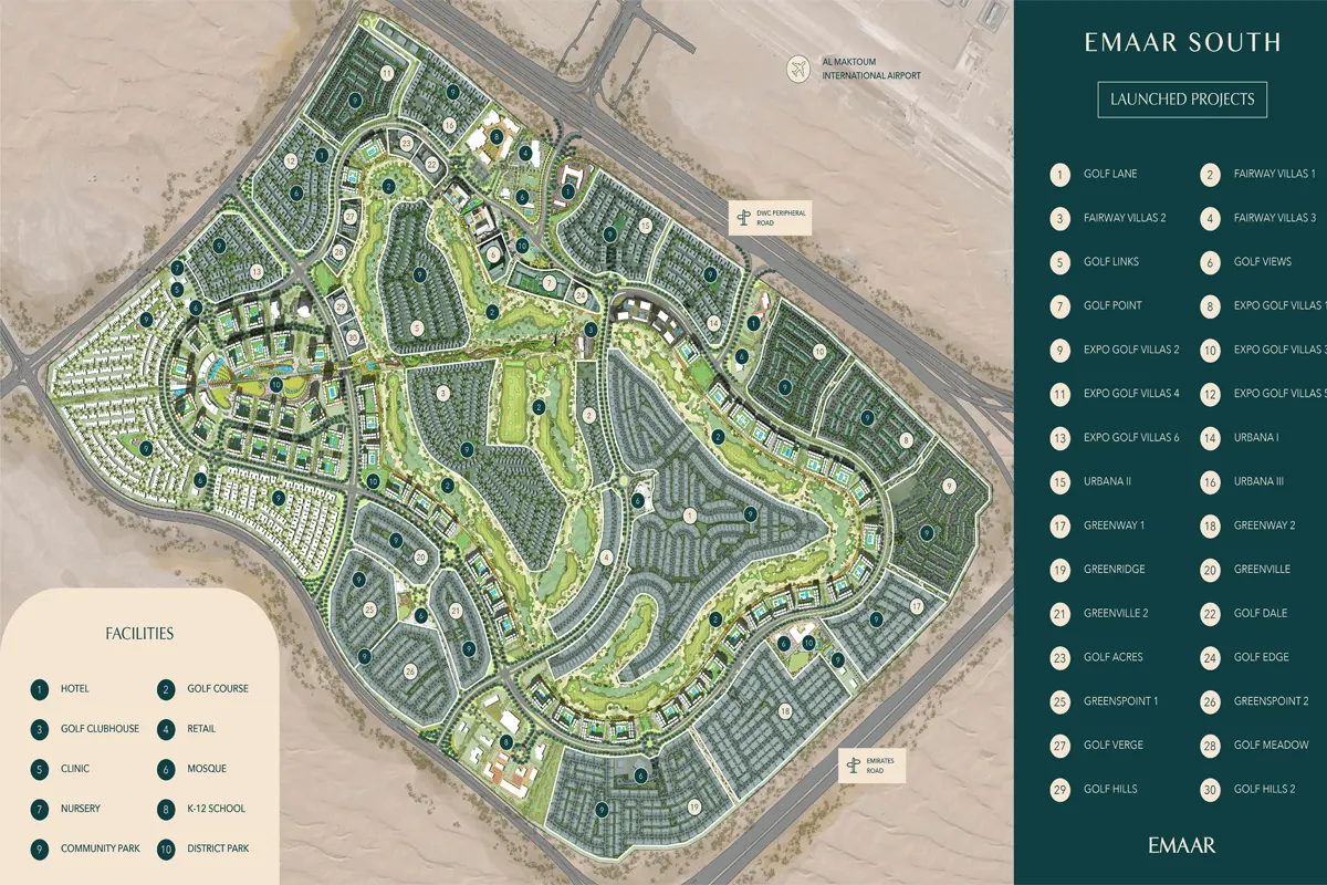 Emaar Properties presents a latest development in Emaar South, Golf Hills that features curated selection of 1, 2, & 3 bedroom apartments and 3-bedroom townhouses. A modern tranquil sanctuary of balance, art, and sophistication. A family friendly community where natural elements meet architectural brilliance creating an unmatched sense of belonging and community. Experience the enriching beauty of aesthetics and signature designs.