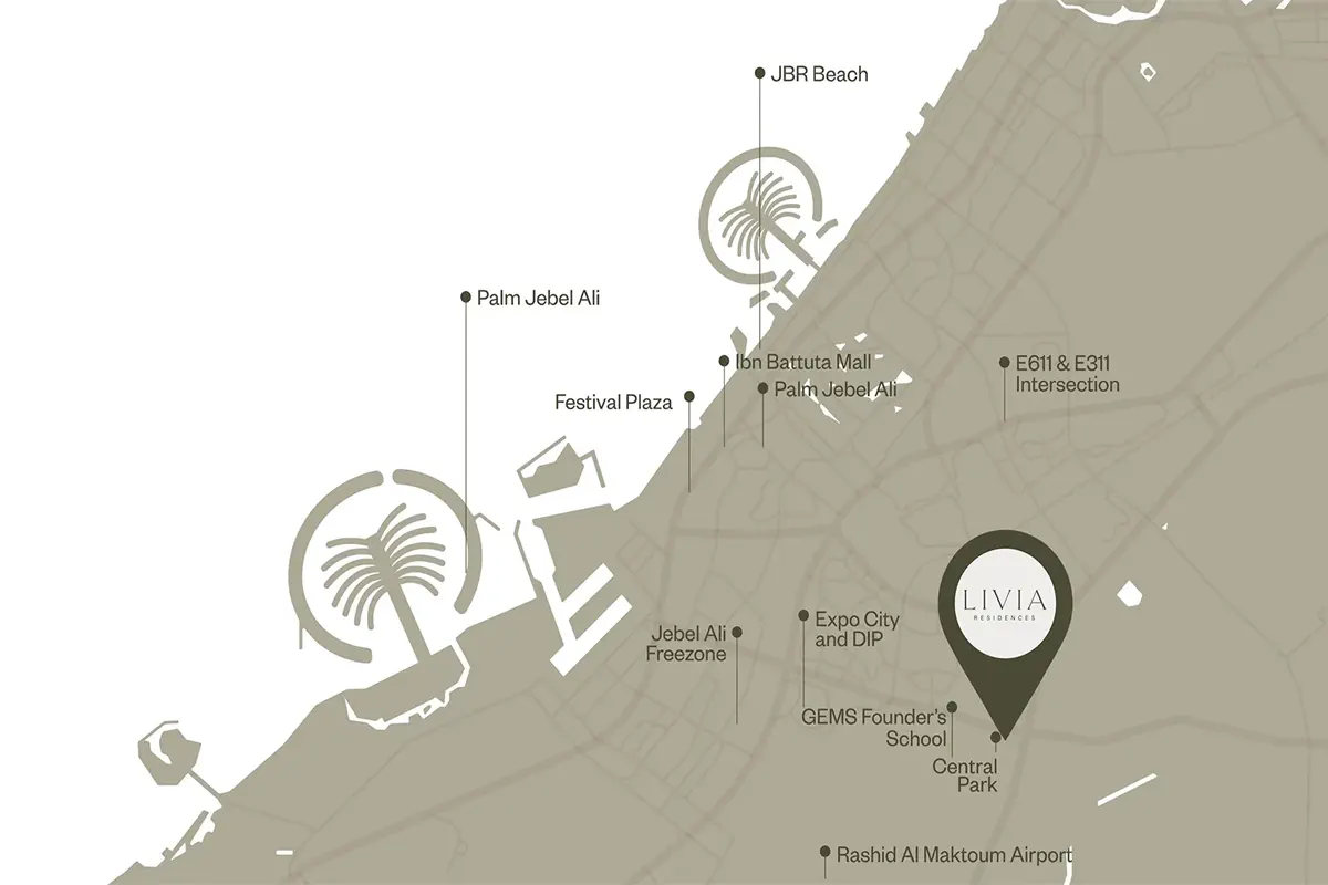 Livia at Dubai South is located in Dubai South, offering excellent connectivity to major landmarks, business hubs, and lifestyle destinations in Dubai.