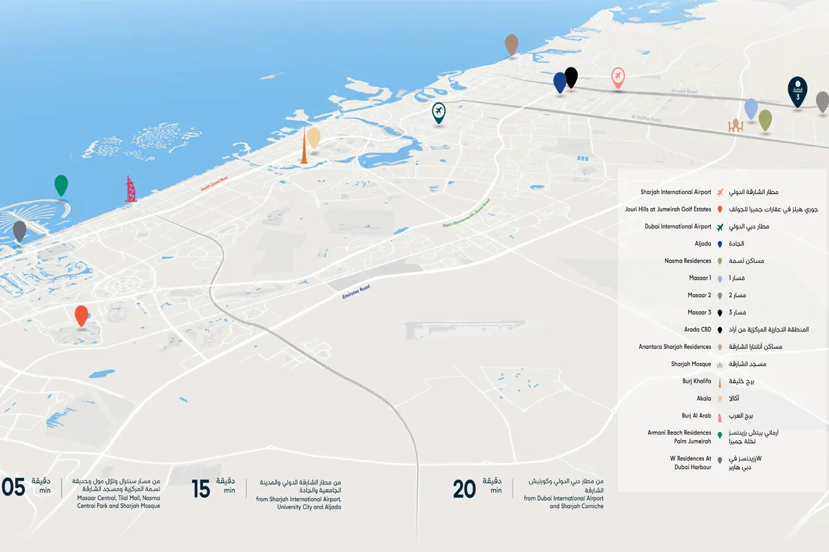 Masaar 3 PH 1 - Dana is located in Sharjah, offering excellent connectivity to major landmarks, business hubs, and lifestyle destinations in Sharjah.
