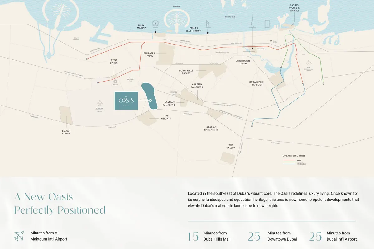 Ostra Palace Villas is located in The Oasis, offering excellent connectivity to major landmarks, business hubs, and lifestyle destinations in Dubai.